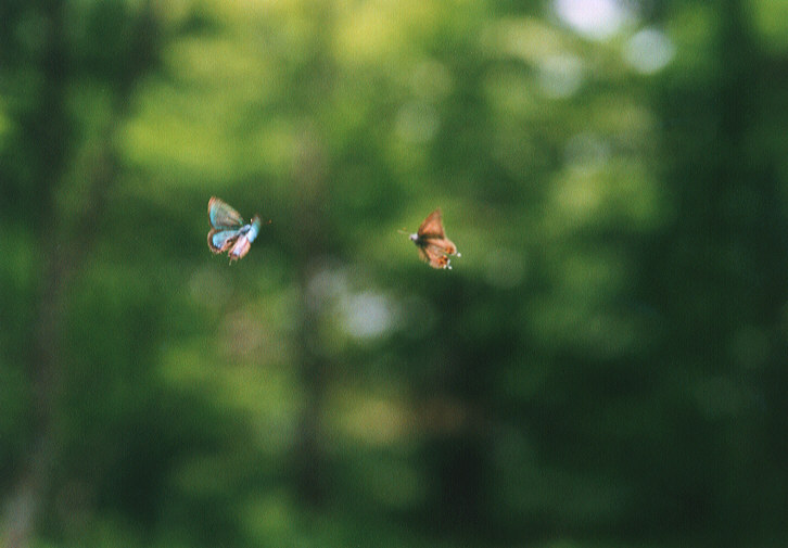ゼフィルスの仲間は、それぞれ決まった時間帯に、雄が梢上にテリトリーを主張して