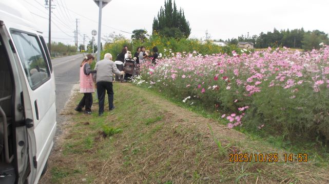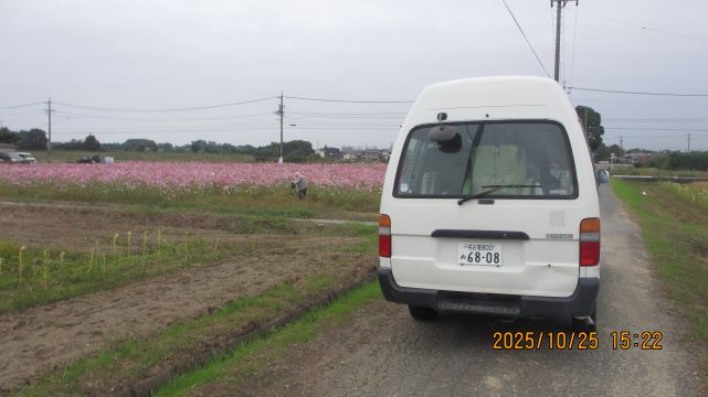 ハイエースで東郷町と刈谷市のコスモス畑へ行きました。 東郷町ではコスモス畑に先客の方々もみえ、 写真を撮ったりして楽しみました。 |