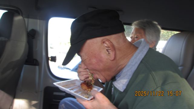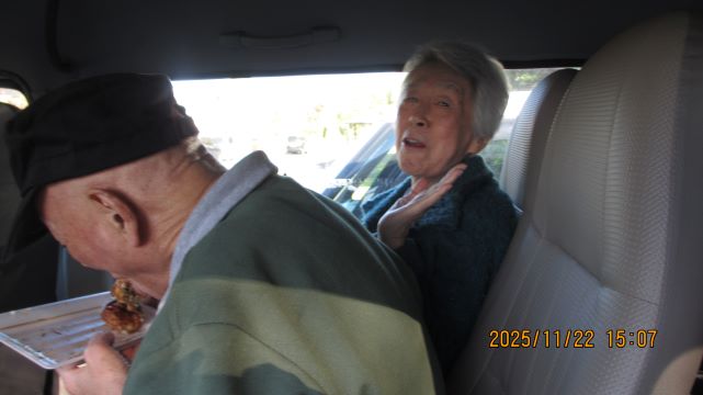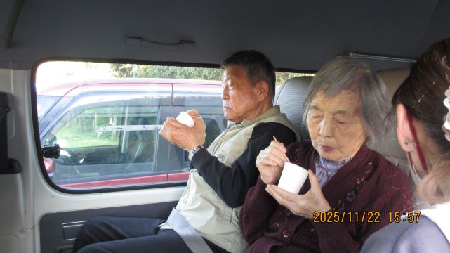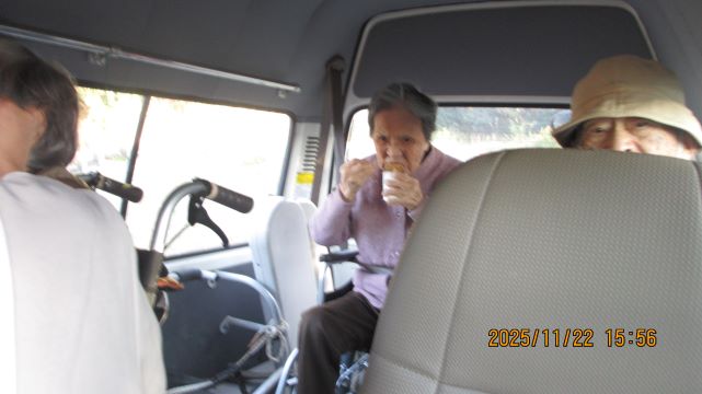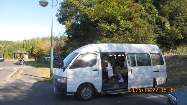 ハイエースで市内をドライブしました。 途中、たこ焼きを買い勅使池の畔で車内で いただきました。 |
