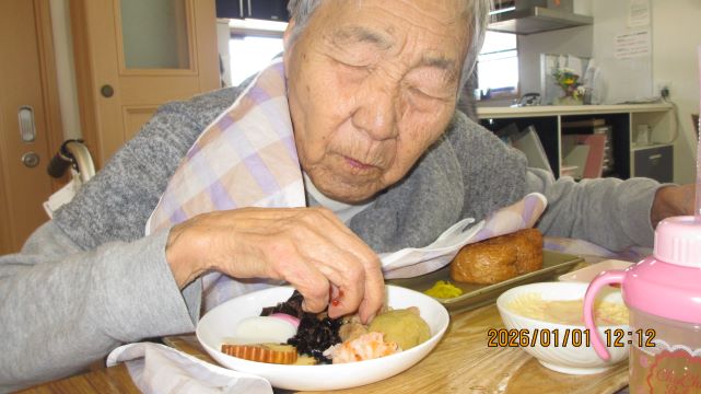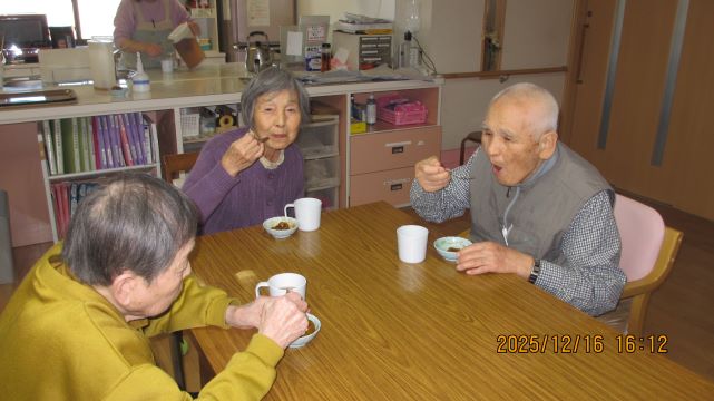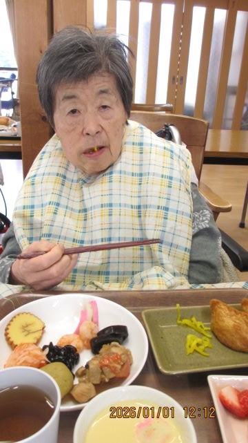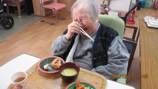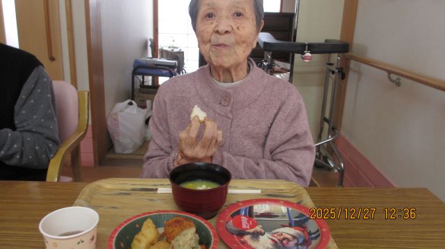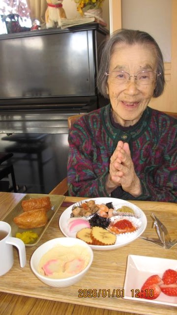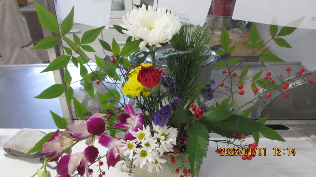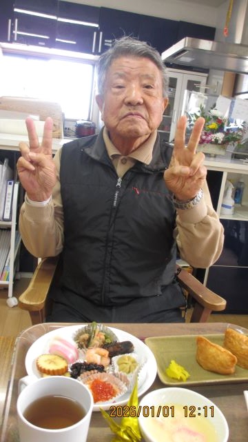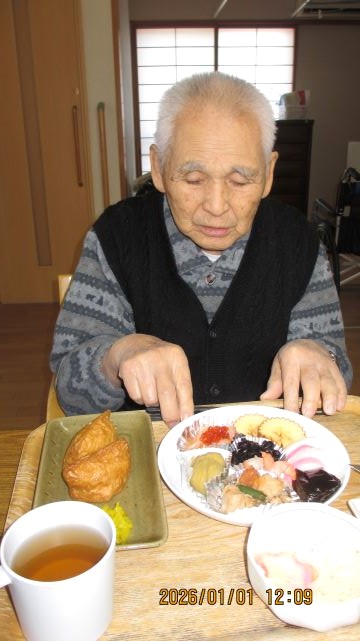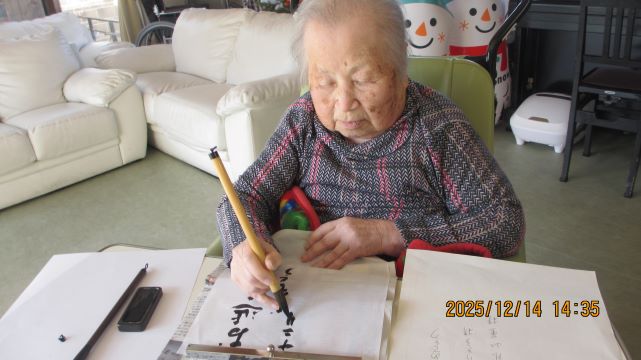 お正月に向けて、習字が得意な入居者の方に 習字で書いていただきました。 |