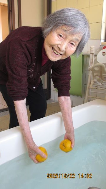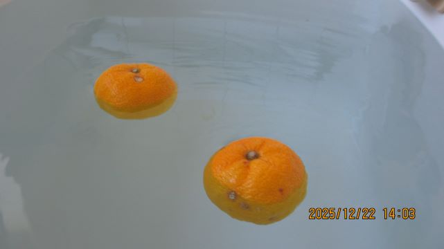 冬至(とうじ)の日 柚子(ゆず)をお風呂に浮かべました。 |